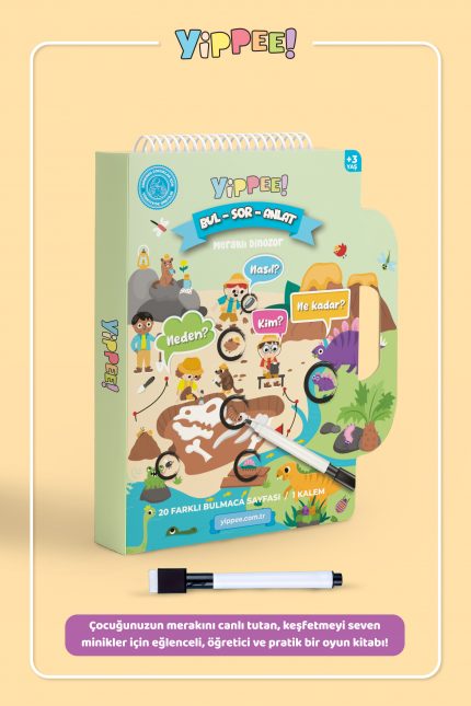 Bul-Sor-Anlat – Meraklı Dinozor | 3 Seviyeli Eğitici Bulmaca Oyunu + Silinebilir Kalem