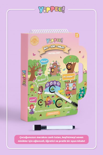 Bul-Sor-Anlat – Meraklı Peri | 3 Seviyeli Eğitici Bulmaca Oyunu + Silinebilir Kalem