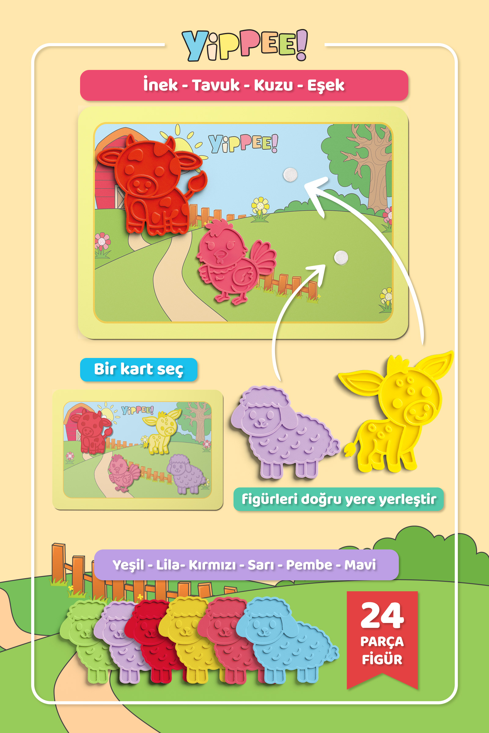 Çocukların renkleri tanıma, eşleştirme ve dikkat geliştirme becerilerini güçlendiren eğlenceli bir okul öncesi eğitim setidir. Tamamen bitkisel kaynaklı malzemeden üretilen 40 parçalık bu set, güvenli yapısı ve sevimli çiftlik hayvanlarıyla çocukların oyun yoluyla öğrenmesini destekler.