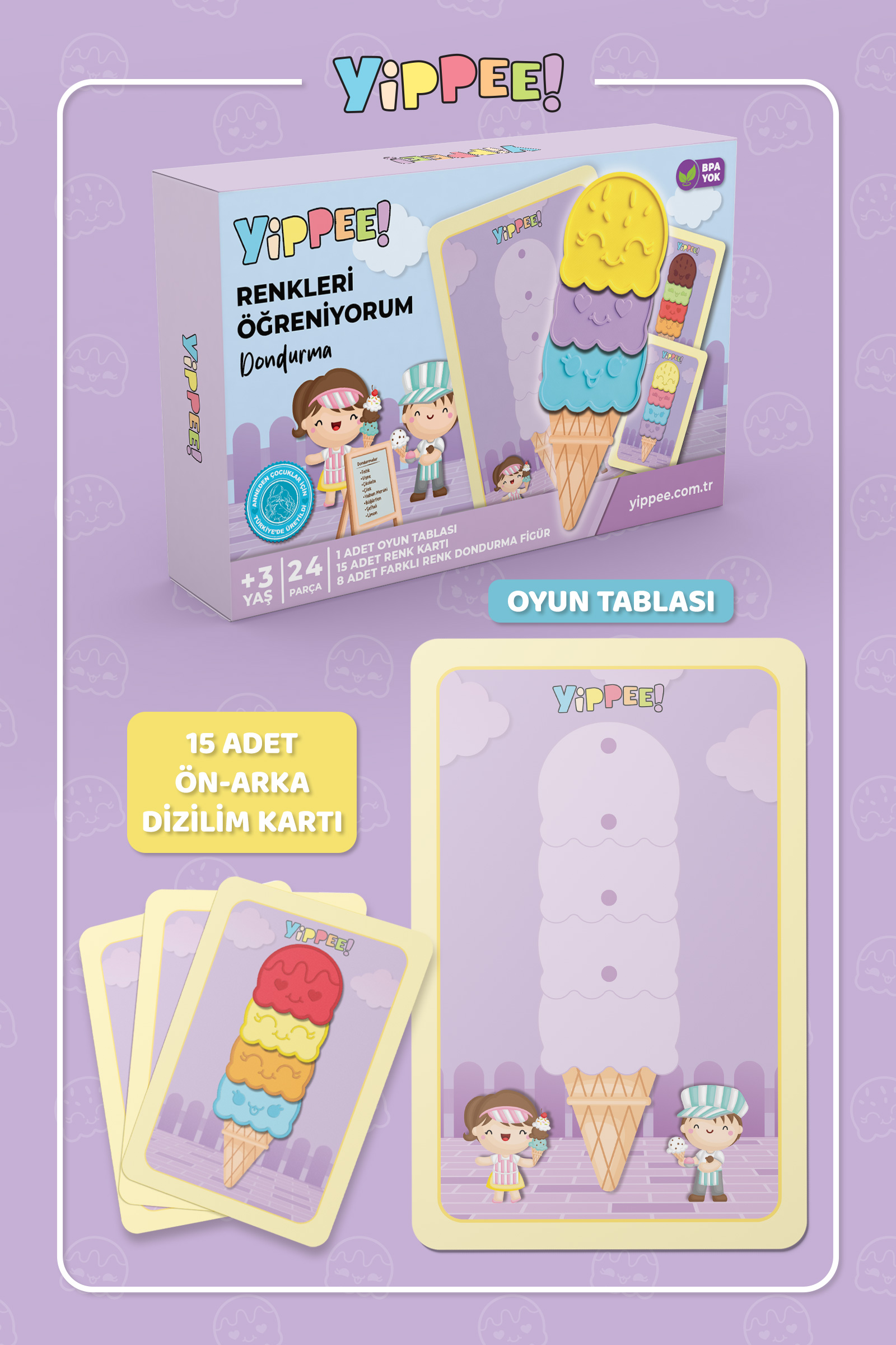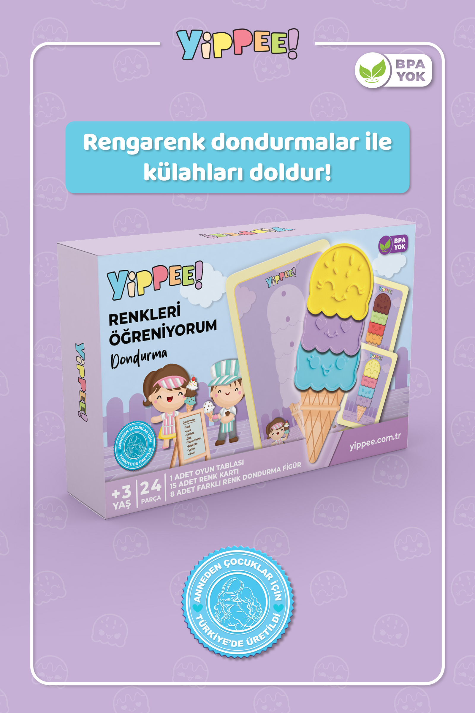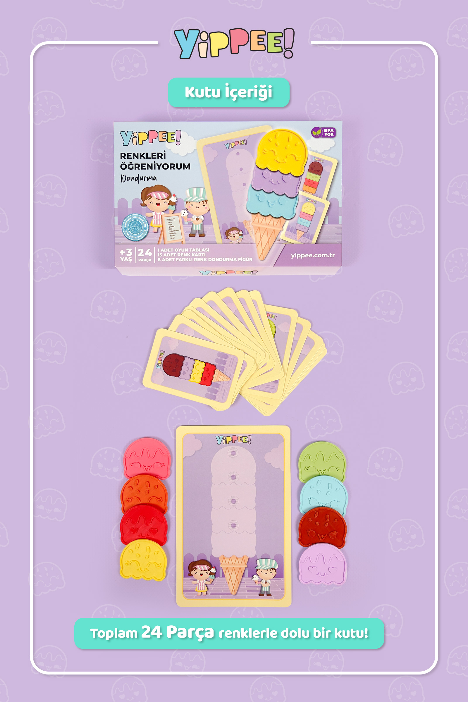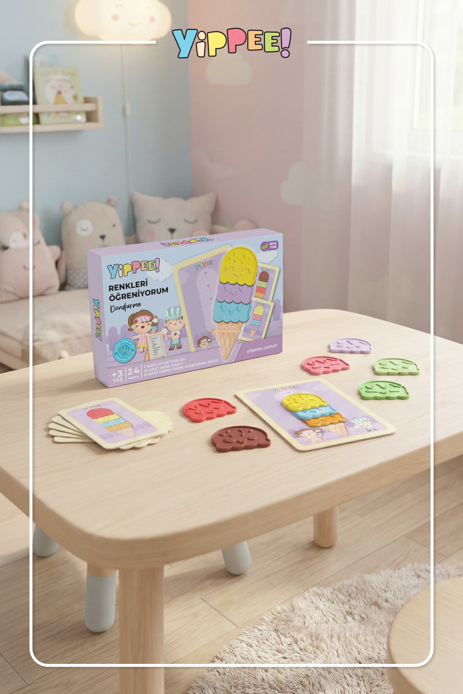 Yippee Renkleri Öğreniyorum, çocukların temel renkleri tanımasını, ayırt etmesini ve